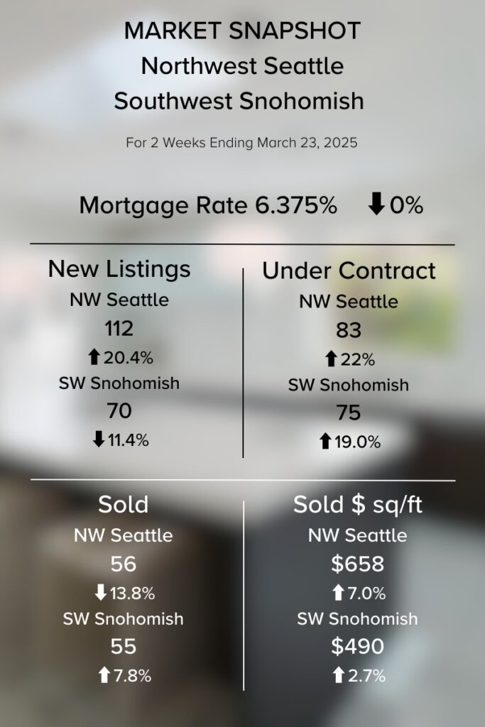 Last week was our 5-year anniversary for tracking stats! We started tracking right at the beginning of the pandemic. It’s kind of interesting to go back and look at where things were at – Inventory level for NW Seattle was 114 homes and interest rates were 3.625%! That feels like a lifetime ago.