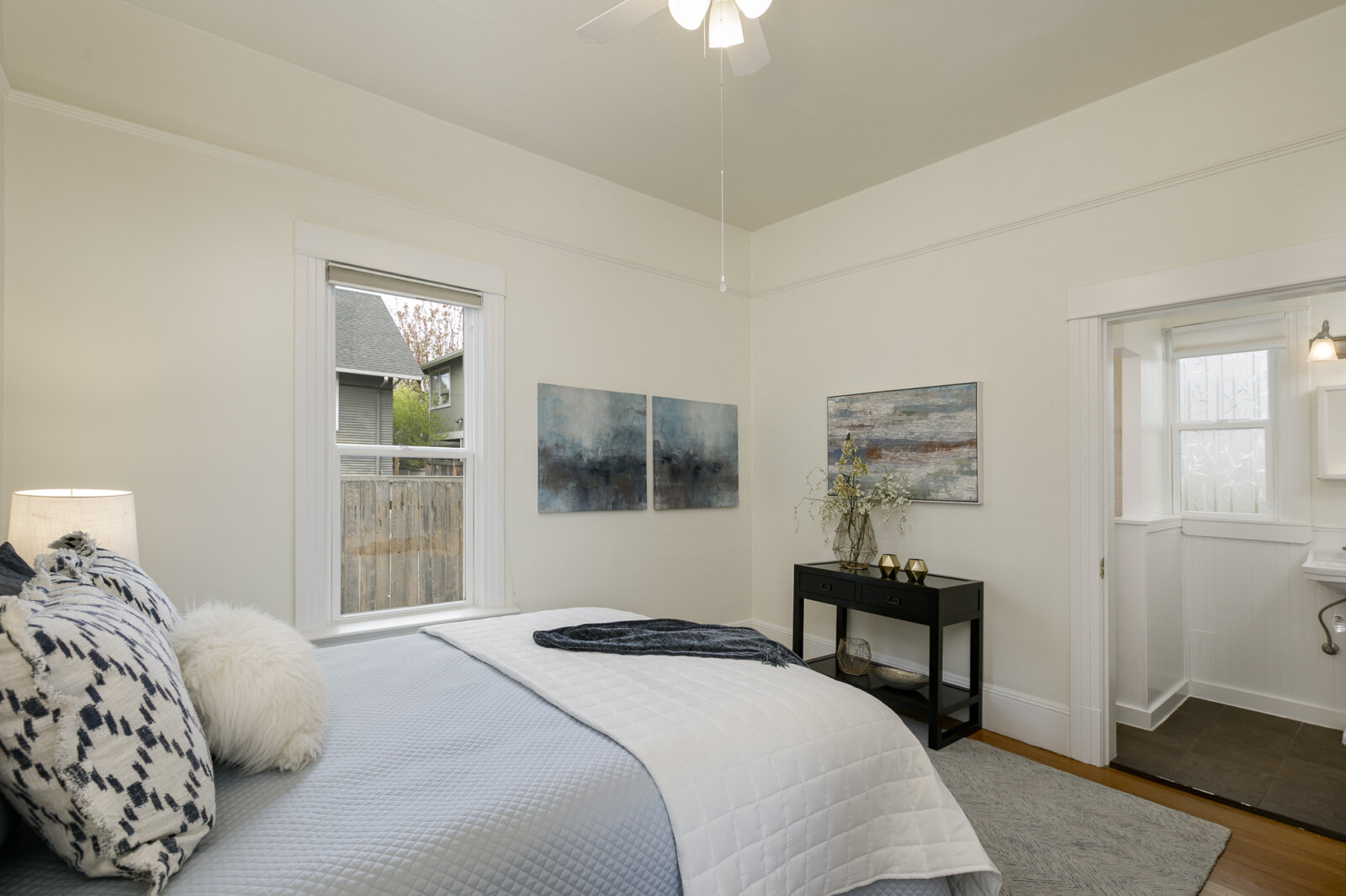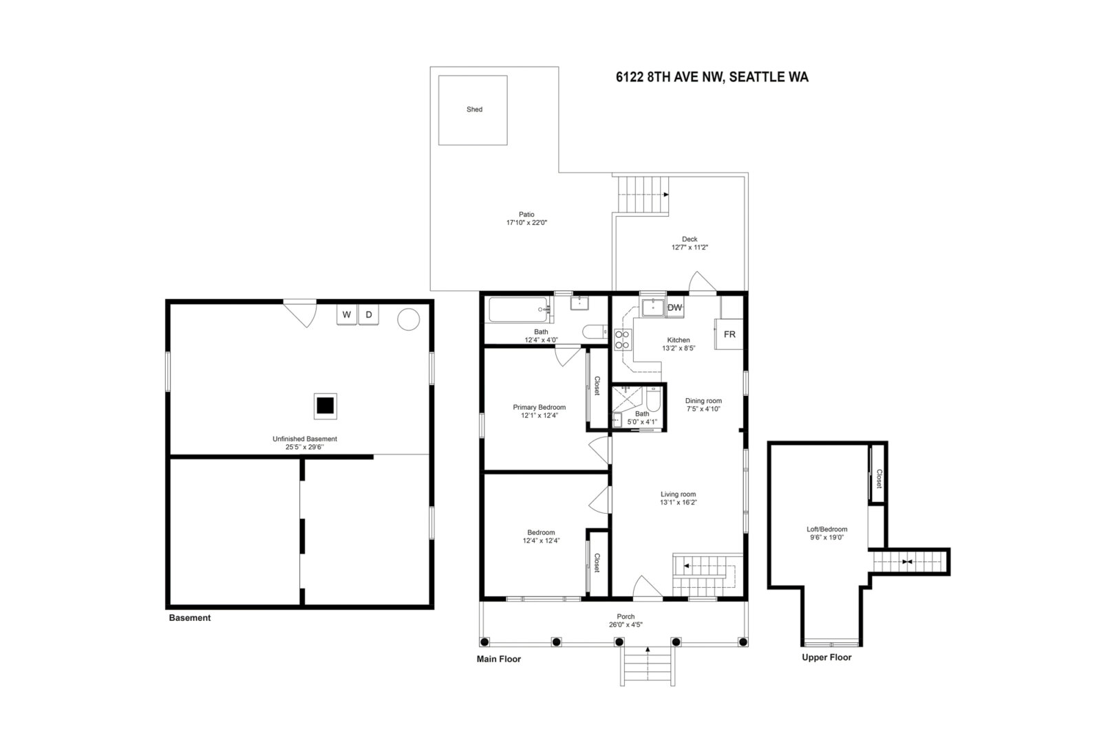 Step into this thoughtfully updated 1904 Craftsman at 6122 8th Ave NW in Seattle’s highly sought-after Greater Ballard neighborhood, where timeless charm meets modern comfort and thoughtful updates. The main level welcomes you with high ceilings and a light-filled, open layout featuring warm fir floors throughout, creating an inviting space to relax and entertain. Enjoy a cozy living room, dining area, updated kitchen and bath, plus a main-floor primary suite with en suite bathroom and a second bedroom for guests or flexible use. Upstairs offers a versatile third bedroom or perfect home office.