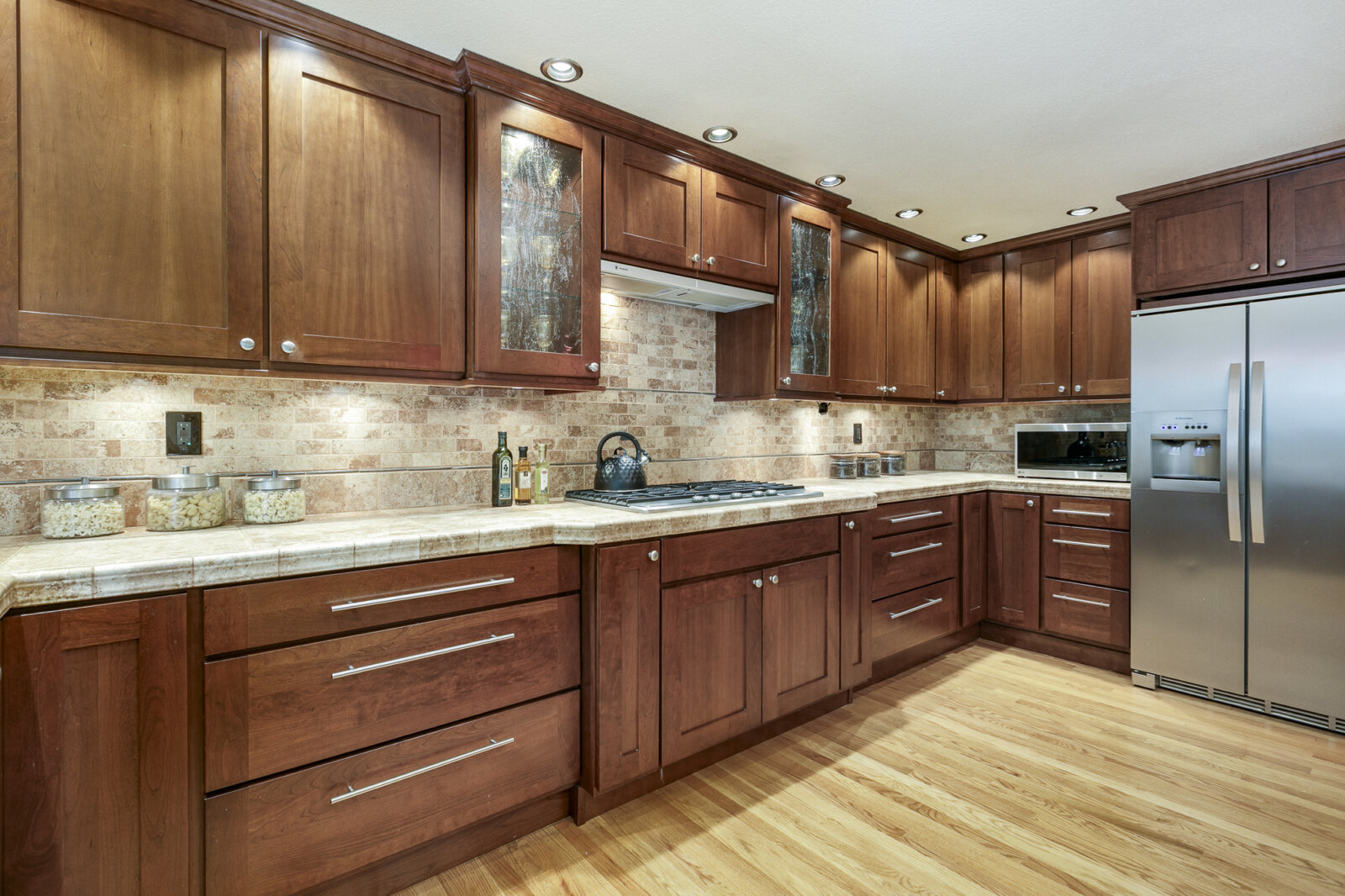 The open and flowing floor plan offers exceptional versatility. The formal living with gas-burning fireplace and dining rooms provide elegant settings for gatherings, while the spacious family room, with a wood-burning fireplace, wet bar, and direct access to the patio, is perfect for casual get-togethers or cozy evenings in. At the heart of the home, the remodeled gourmet kitchen features a gas range, large prep island, and abundant custom cabinetry, designed to delight both everyday cooks and passionate entertainers alike.