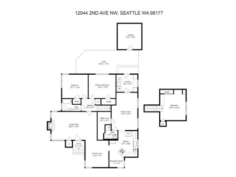 Upstairs, the third bedroom is light-filled and includes abundant built-in storage. Outside, the fully fenced backyard is perfect for pets and connects to the detached garage via a convenient alley. Enjoy easy access to Carkeek Park, shopping, transit, and major commuting routes. This well-maintained home blends classic charm, practical updates, and an exceptional neighborhood setting. Ready to enjoy and pre-inspected for confidence.
