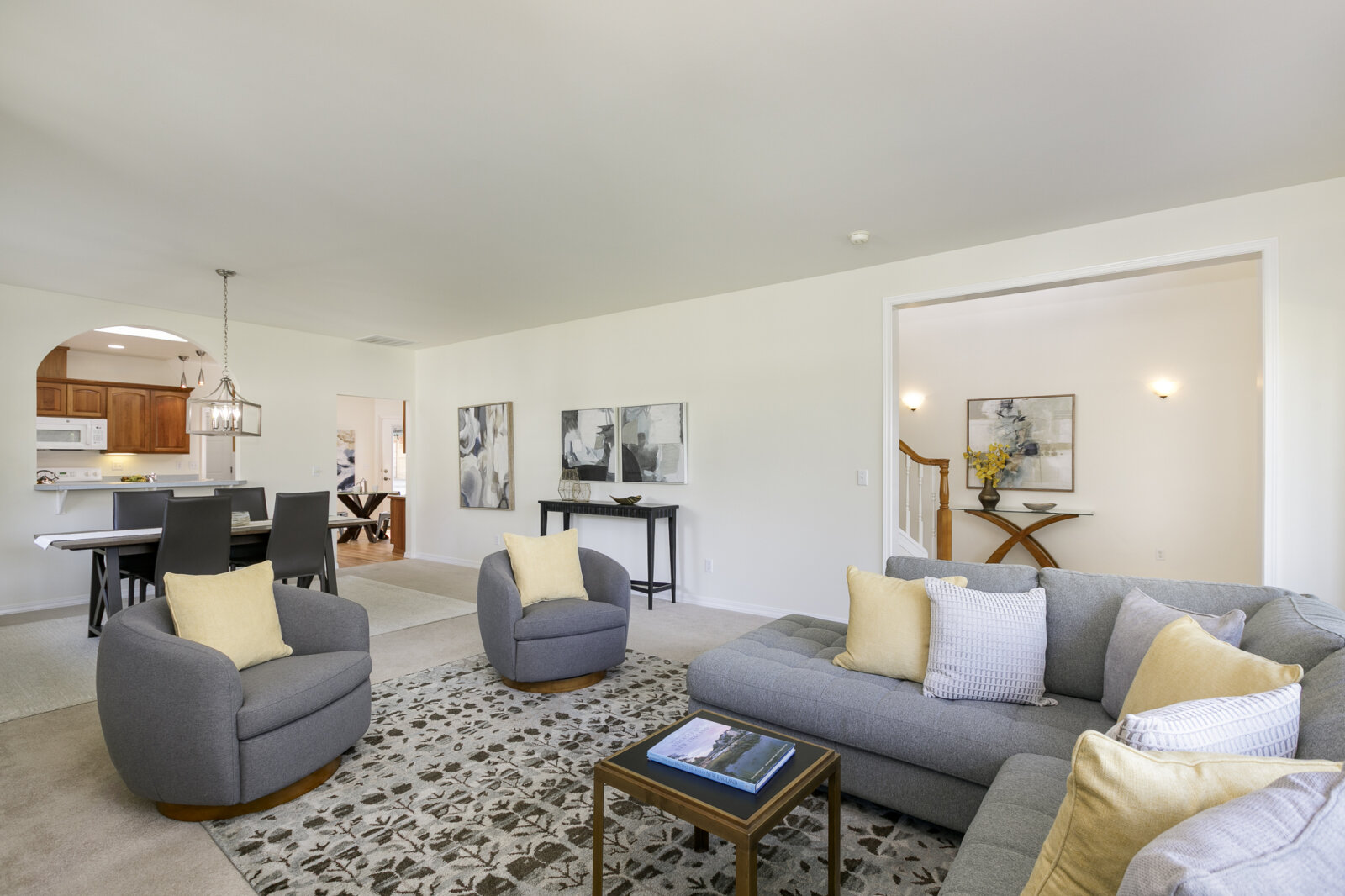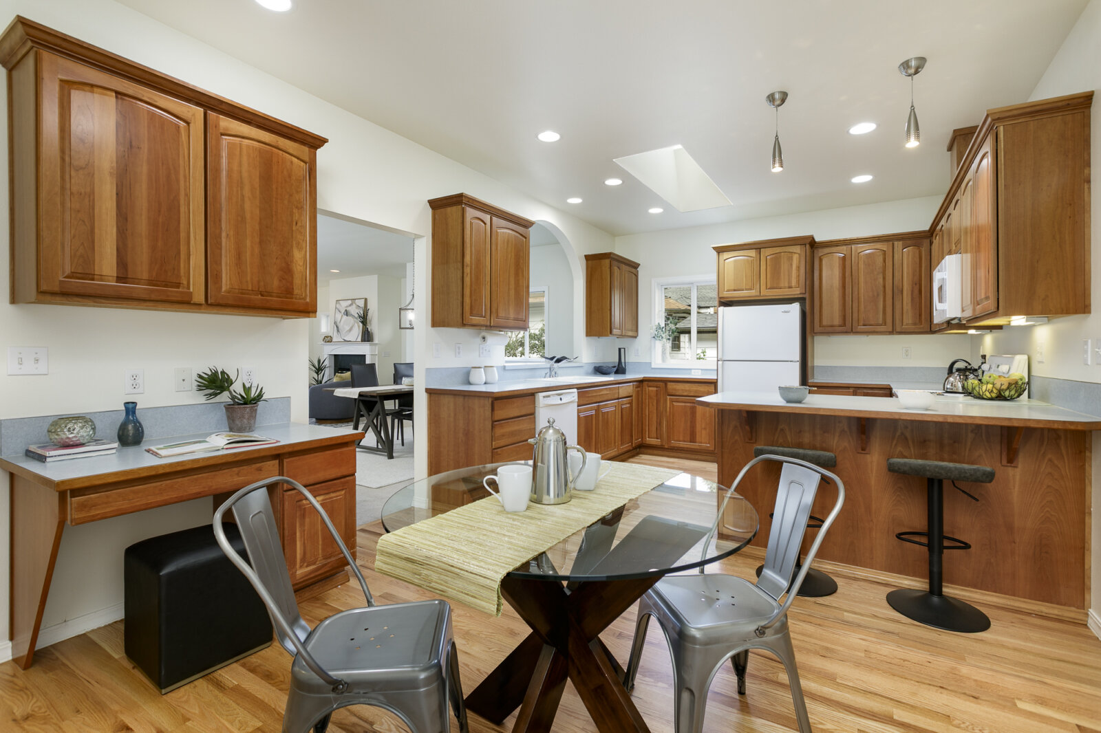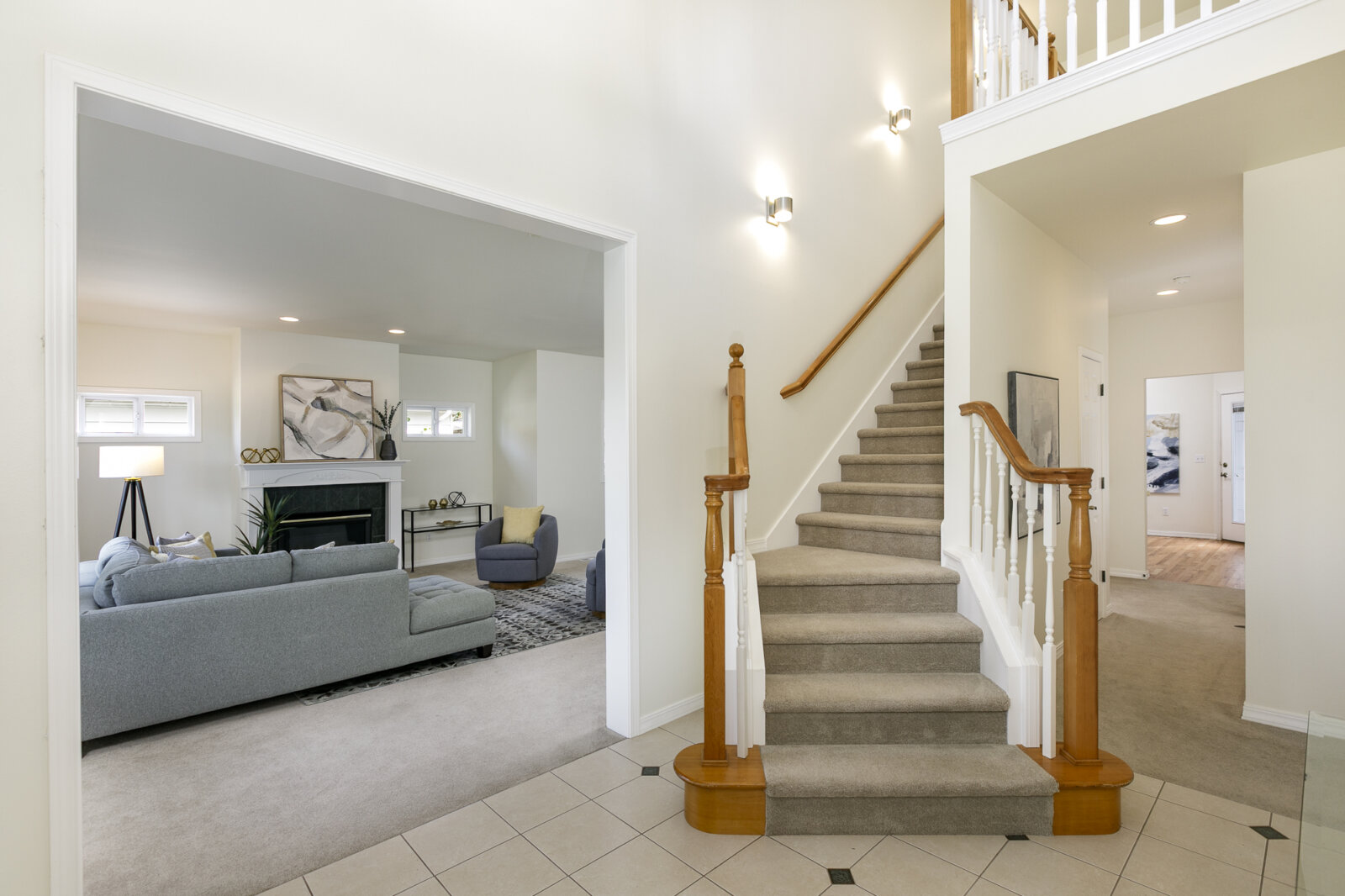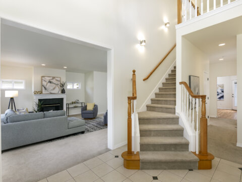 From the moment you step inside, the dramatic two-story entry creates a sense of openness and elegance, with abundant natural light streaming through large windows. The inviting living room is centered around a warm gas fireplace, perfect for gathering on cool evenings, while the adjoining dining room offers ample space for hosting holiday meals or casual get-togethers with friends.
