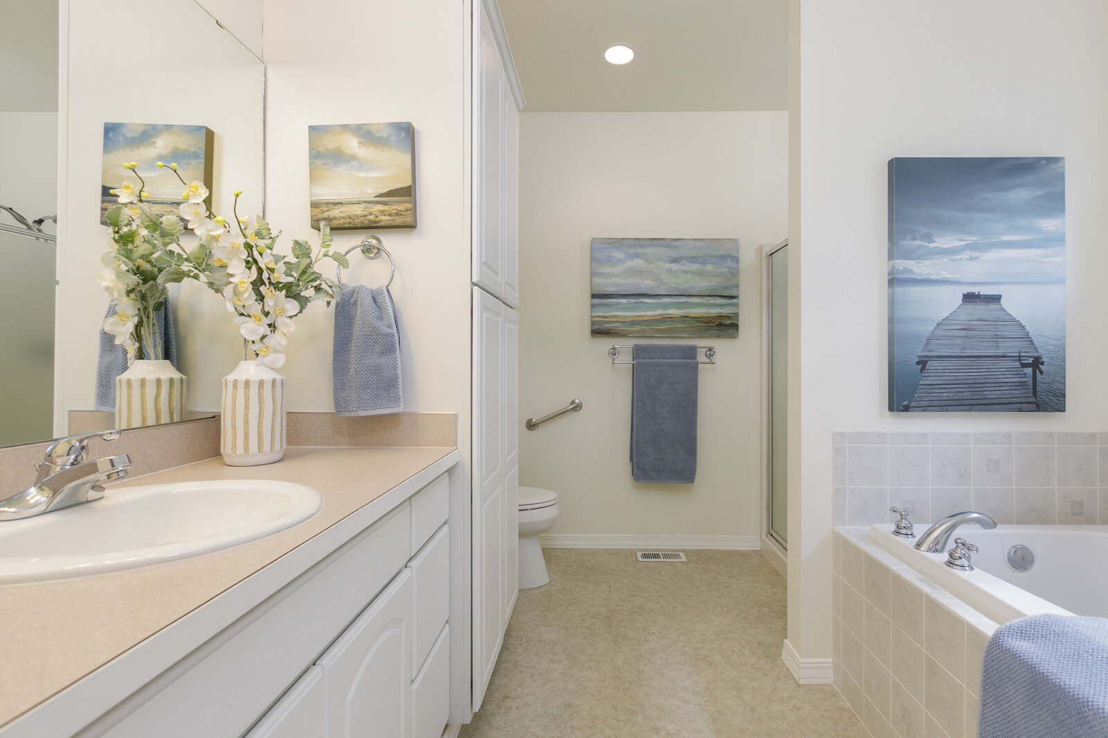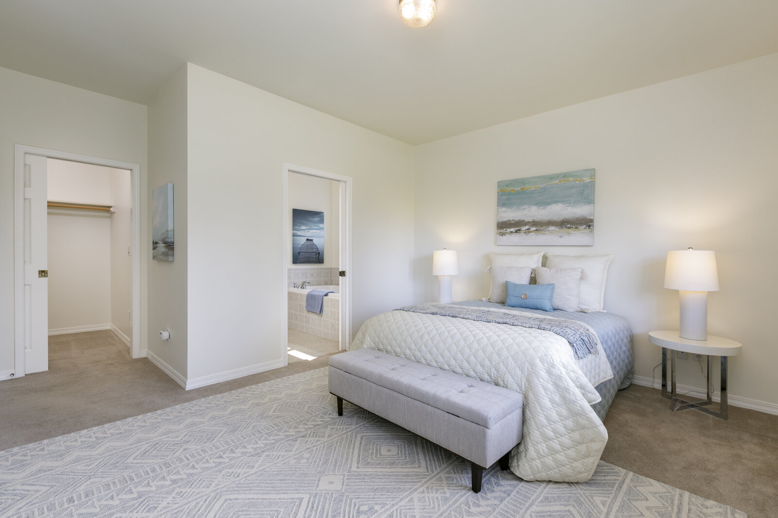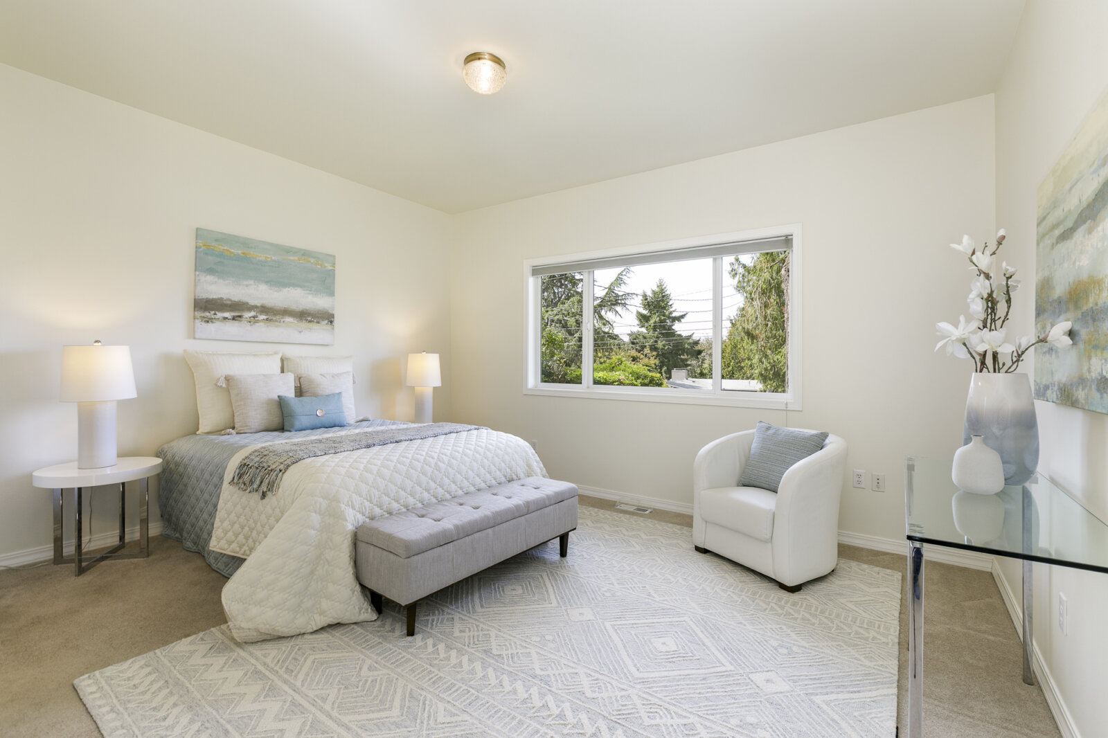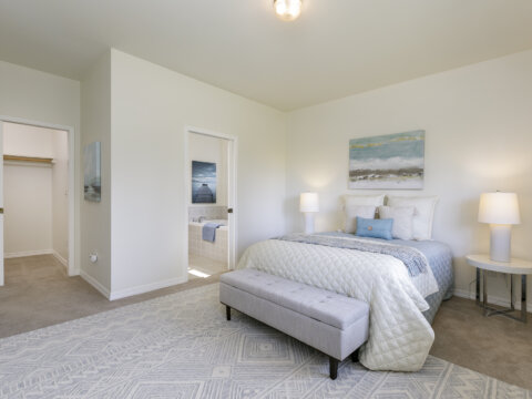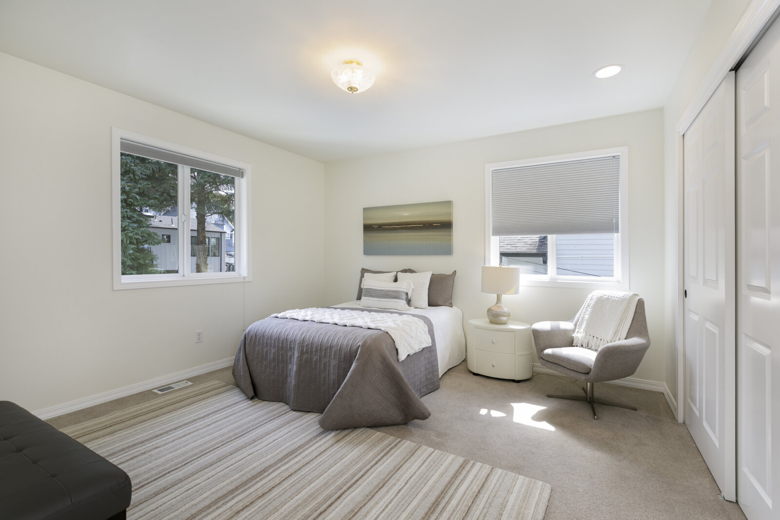 The main level is anchored by a serene primary suite designed for rest and retreat, complete with a walk-in closet and a spa-like five-piece bath with soaking tub and separate shower. A second bright and airy bedroom, along with a full bath, offers comfort and flexibility for guests or a home office.