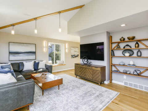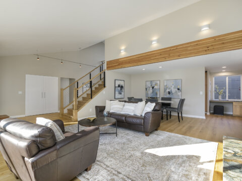 Experience the perfect blend of Northwest contemporary style and refined comfort in this Windermere residence. Behind its sleek exterior, a stunning main level welcomes you with a dramatic staircase, vaulted ceilings, and a striking wood-burning fireplace that anchors the open, flowing floor plan. Sunlight fills the home, enhancing the beautifully connected living and dining spaces designed for both everyday living and effortless entertaining.