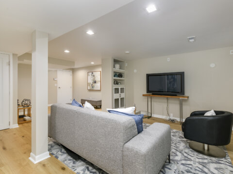 Upstairs, a bright landing leads to two large bedrooms and a full bath, providing comfortable accommodations for household members or guests. The lower level expands the home’s versatility with a media room and a fully equipped one bedroom garden apartment with separate entry. This space is perfectly suited for visitors, a private home office, or potential rental income.
